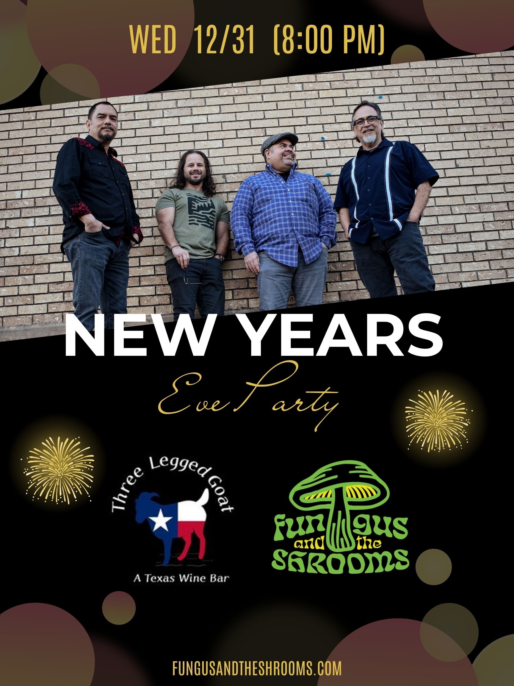 Join us at Three Legged Goat on Wednesday 12/31 at 8:00 PM as we ring in the New Year with Fungus and the Shrooms!